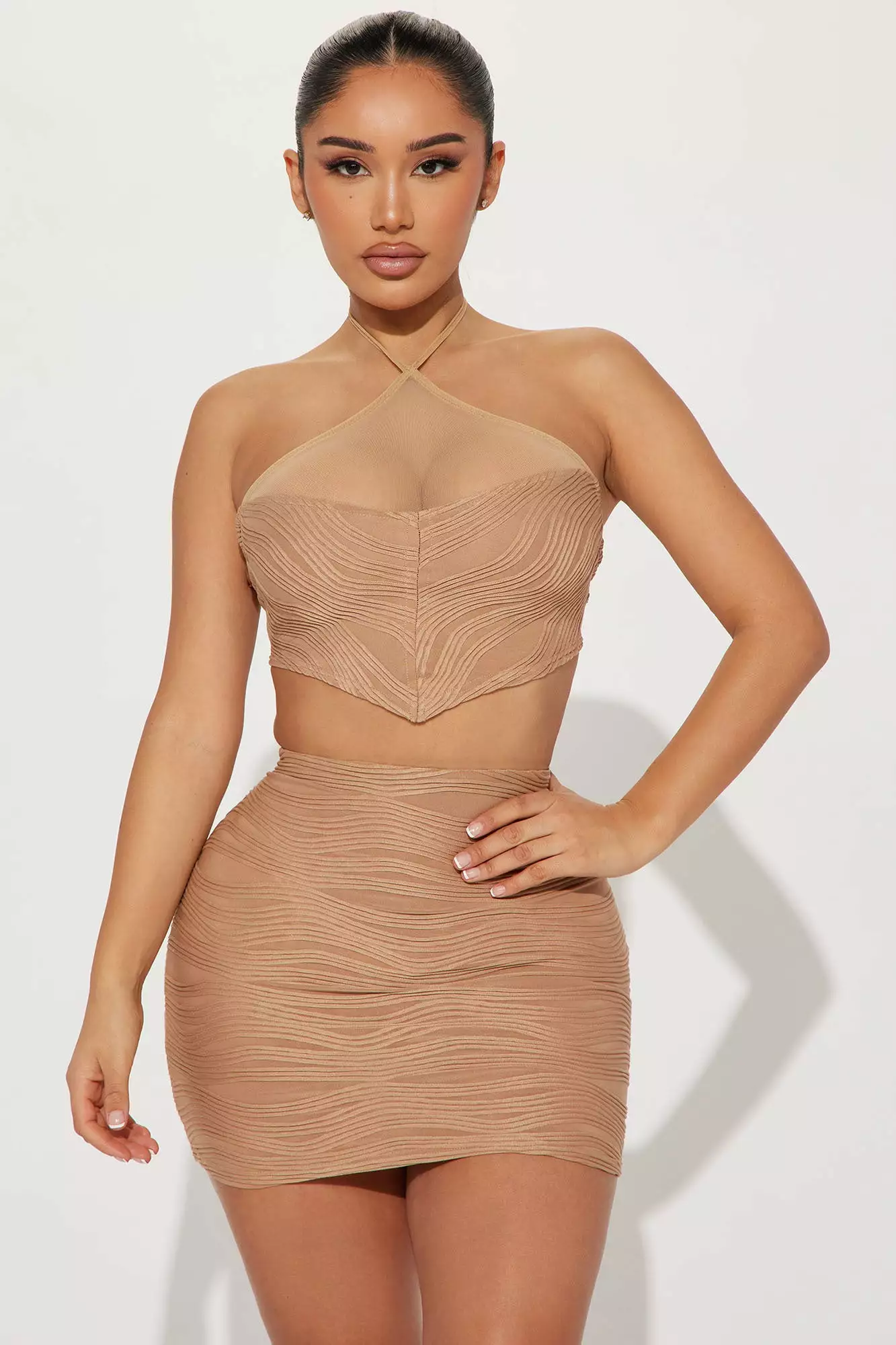 Be the first to review “Fashion Nova Angela Textured Skirt Set – Mocha” Cancel reply