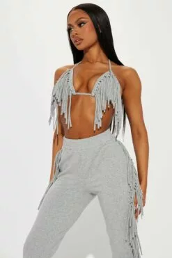 Fashion Nova Fringe Moment Jogger Set – Heather Grey