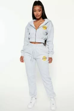 Fashion Nova Lakers Cropped Zip Hoodie – Heather Grey