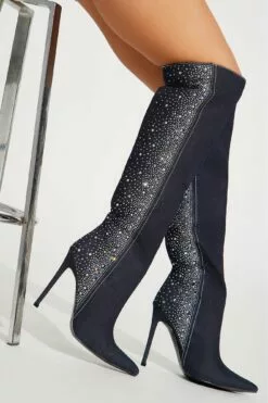 Fashion Nova Maeve Embellished Knee High Boots – Dark Denim