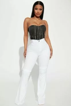 Fashion Nova Ronnie Rhinestone Bodysuit – Black