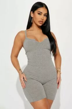 Fashion Nova Adriana Romper – Heather Grey